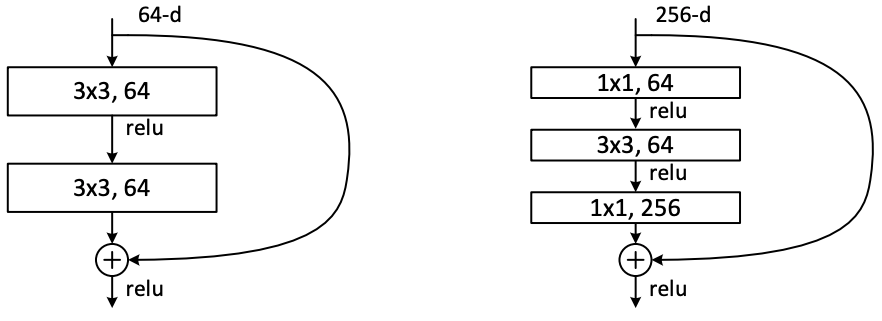 2. ResNet 모델에는 두가지 Block을 기반으로 모델을 구축한다.